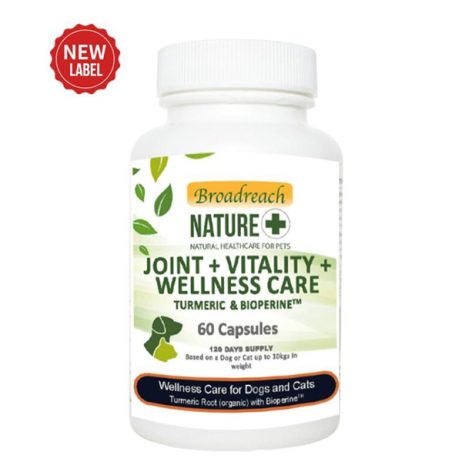 Broadreach Nature+ – Joint + Vitality + Wellness Care – Organic Turmeric & Bioprene for Dogs, Cats, Puppies & Kittens – 60 sprinkle capsules