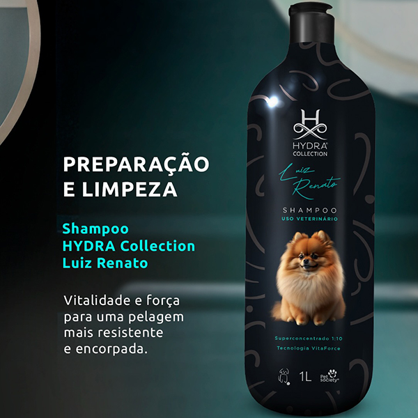 * Hydra Collection Luiz Renato Shampoo פורמולה מקצועית מרוכזת במיוחד (1:10) שנועדה להעניק חוזק, חיוניות ונפח לפרווה.