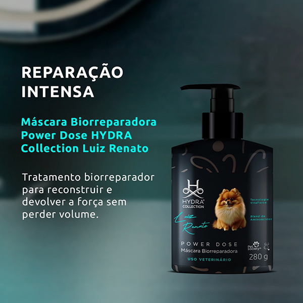 * Hydra Groomers Collection Luiz Renato Power Dose מסכת bio-repair מקצועית המספקת לחות אינטנסיבית ומיידית במריחה אחת. מחזקת, משקמת ומשפרת את הנפח מבלי להכביד על הפרווה.