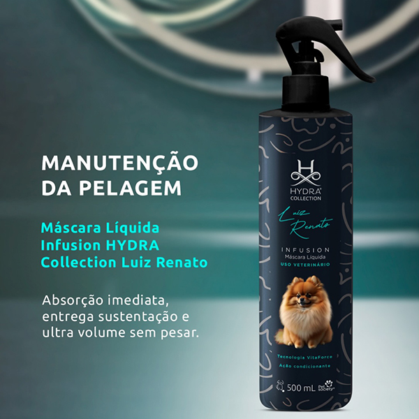 * Hydra Groomers Collection Luiz Renato Infusion מסכה נוזלית מקצועית שנועדה לספק חוזק ונפח מיידיים תוך 60 שניות בלבד. משאירה את הפרווה מלאה יותר, חזקה יותר וקלה יותר לטיפול מבלי להכביד עליה. מוצר שנשתמש בו אחת לשבועיים וב Power Dose אחת לשבועיים – 500 מל