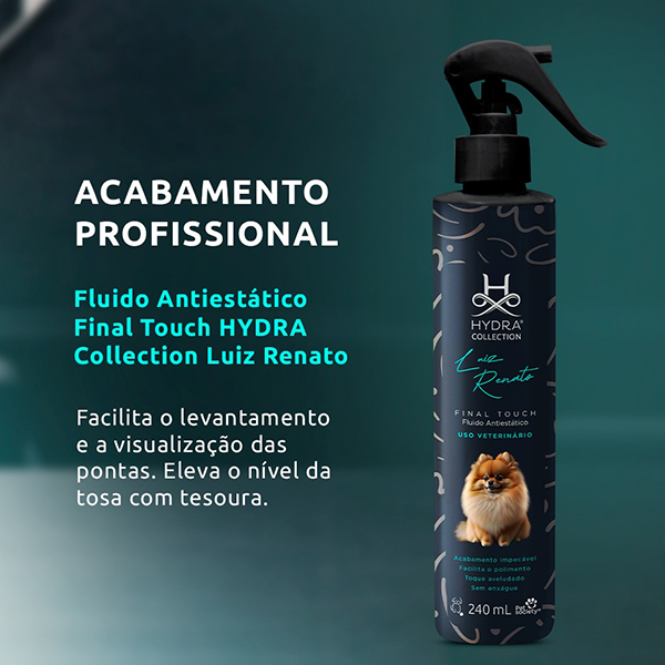 * Hydra Groomers Collection Luiz Renato Final Touch נוזל גימור אנטי-סטטי מקצועי המיועד לגימור ולפני עבודת מספריים מדויק. מספק נפח, יישור והגדרה מבלי לפגוע במבנה הפרווה – 240 מ"ל