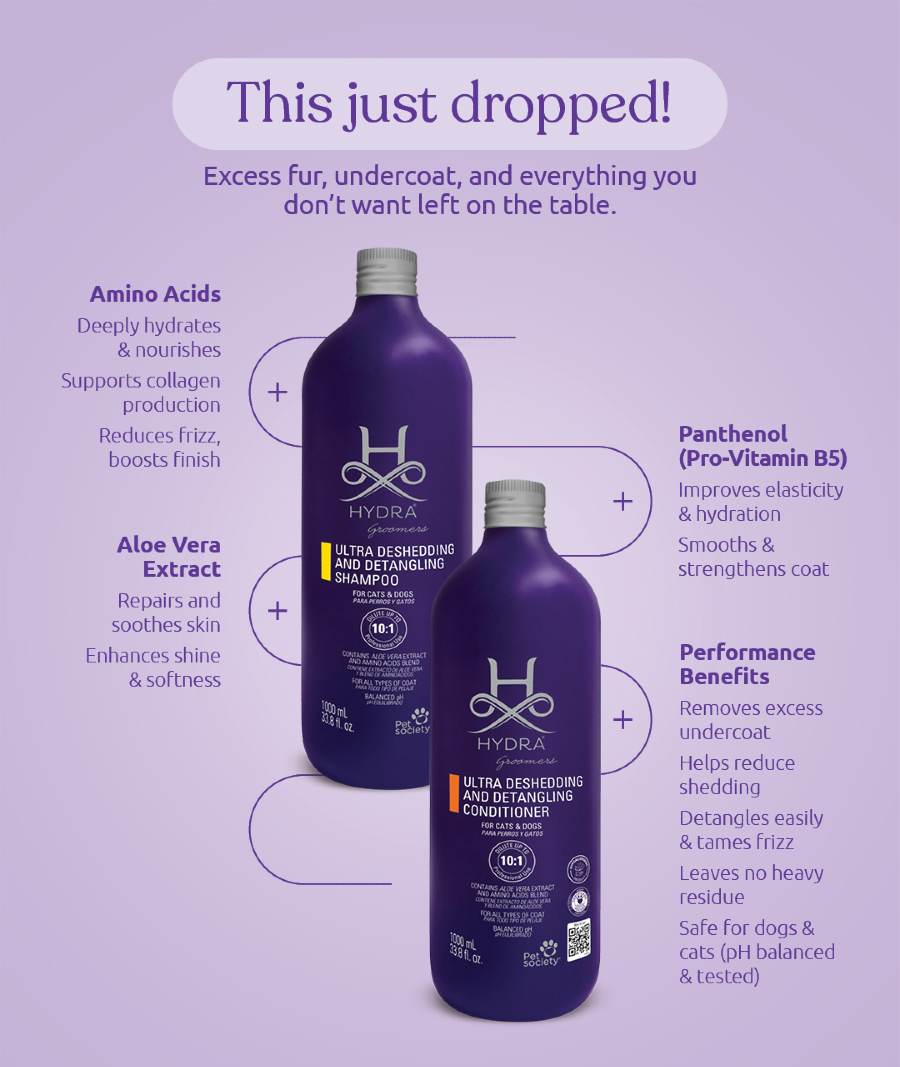 * מרכך Deshedding And Detangling Conditioner מרכך מקצועי בעל פורמולה זו מעדנת, מבריקה ומחליקה את הפרווה בכל שימוש – הכוללת את הניחוח הייחודי של הידרה.